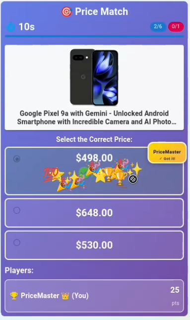 When you win a round, the product is added to your Game Cart. During gameplay, all players can view the items in each other's carts. The total value of the products in your cart contributes to your chances of winning the game.